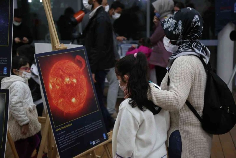 Dünya’dan Evren’e Bakış Sergisi’nin de yer aldığı etkinlikte çocuklar elektrikli teleskopları deneyimleme fırsatı da buldu.