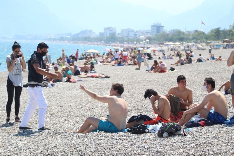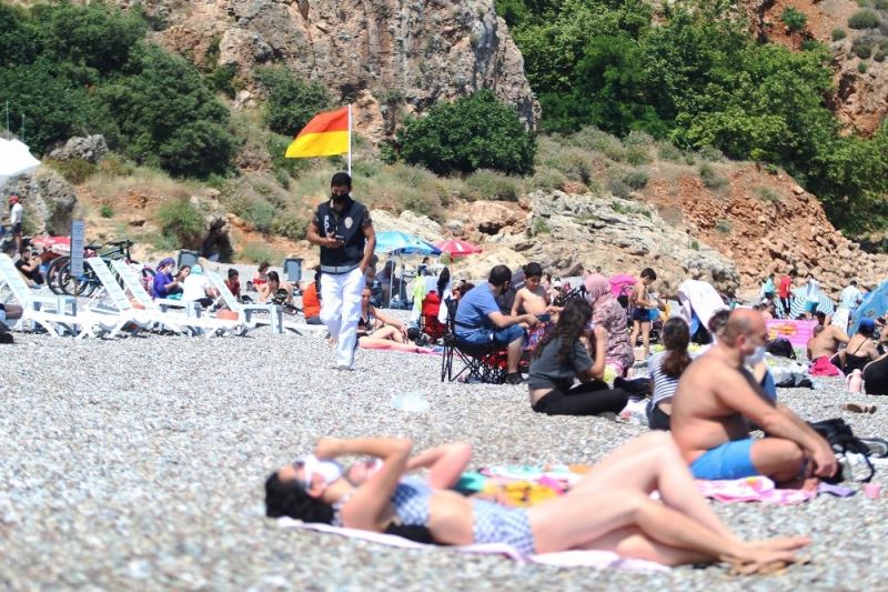 Dünyaca ünlü Konyaaltı Sahilinde Sahil Güvenlik, polis ve zabıtadan maske denetimi