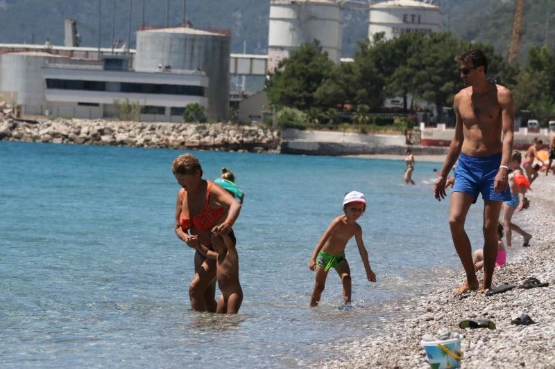 Antalya’nın dünyaca ünlü Konyaatlı Sahili tam zamanlı sokağa çıkma kısıtlamasının uygulandığı Pazar günü kısıtlamadan muaf tutulan turistlere kaldı. Sabah erken saatlerinde kilometrelerce uzanan sahile gelen turistler, hava sıcaklığının 32 dereceye deniz suyu sıcaklığının ise 26 dereceye çıkmasını fırsat bilerek tatilin keyfini çıkardı. Turistlerden bazıları Akdeniz’in serin sularında yüzerken bazıları ise sıcak kumsalda güneşlendi. Bazı aileler ise çocukları ilgilenerek onların yüzmesini sağladı. Sahilde yaşanan turist yoğunluğu havadan drone kamerasına da yansıdı.