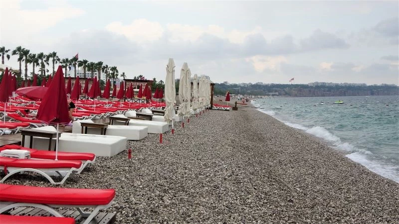 Turizm kenti Antalya’da öğleden sonra etkili olan yağmur nedeniyle az sayıda vatandaş dünyaca ünlü Konyaaltı Sahili’ne gelerek denize girdi.