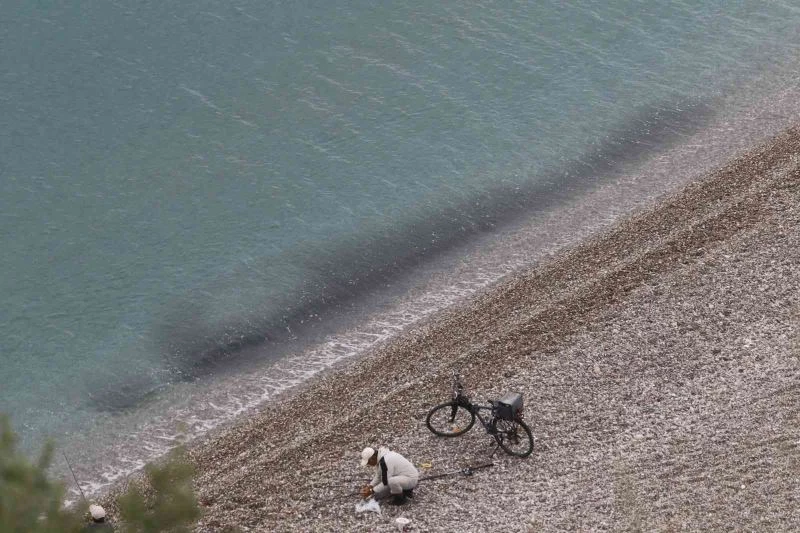 Antalya’nın dünyaca ünlü sahilinde kıyıya gelen balık kümesi, ortaya ilginç bir görüntü çıkardı. Falezlerdeki seyir terasından bakıldığında deniz kirliliği sanılan görüntünün, büyük balıklardan kaçan gümüş balığı kümesi olduğu anlaşıldı.