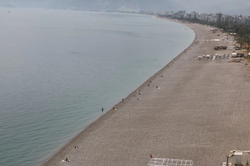 Turizmin başkenti Antalya’da hava sıcaklığı 33-34 dereceye kadar çıkınca dünyaca ünlü Konyaaltı Sahili ıssızlaştı. Kilometrelerce uzunluktaki sahilde elle sayılır sayıda turistin olması şaşırttı.