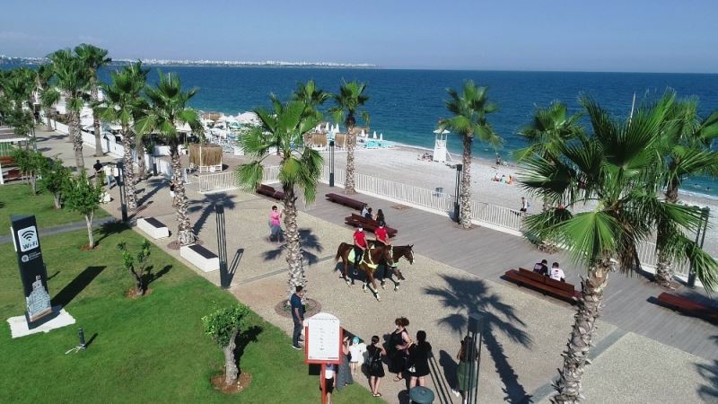 Antalya’da normalleşme süreciyle birlikte hareketlenmeye başlayan dünyaca ünlü sahilde, güvenlik ve asayişe atlı polisler ve bisikletli martı timleri destek veriyor. Sahile gelen tatilcilerse atlı polislerle fotoğraf çektirmek için adeta yarışıyor.