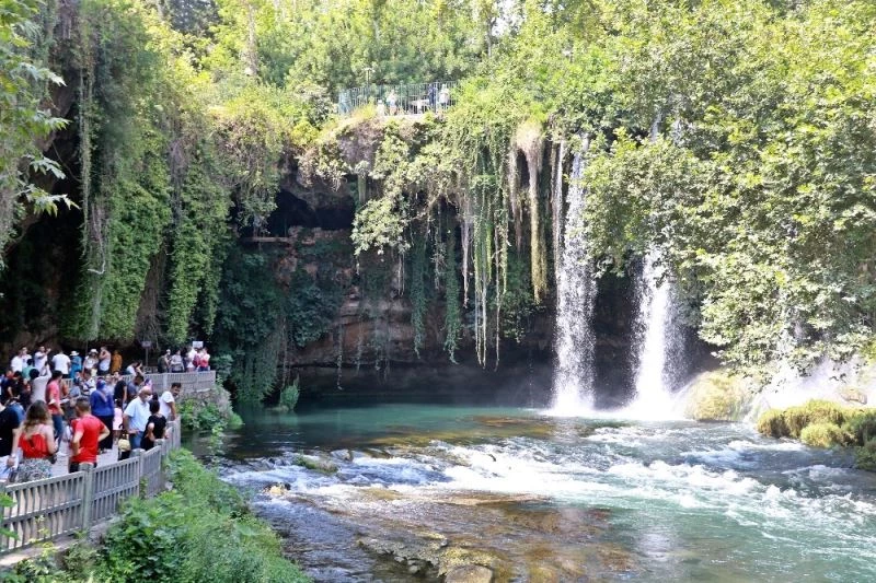 Eşsiz manzarasıyla her yıl yerli ve yabancı turistleri ağırlayan dünyaca ünlü Düden Şelalesi, 4 günlük Kurban Bayramı Tatili nedeniyle hareketli günler yaşadı. Korona virüs tedbirleri kapsamında mart ayında ziyarete kapatılan şelale, normalleşme takvimine girilmesinin ardından ziyaretçilerini ağırlamaya başladı. Kapalı kaldığı süreç içerisinde suyunda ve etrafını saran bitki örtüsünde iyileşme gösteren şelale, bayramda yerli ve yabancı tatilcilerinin akınına uğradı. Kepez ilçesi Varsak Mahallesi’nde yer alan şelalenin çıkış noktasına Türkiye’nin farklı illerinden gelen tatilciler, görsel şölen sunan şelaleyi görmek için adeta kuyruğa girdi. Şelalenin döküldüğü alanda da yoğunluk oluşturan tatilciler, suyun verdiği serinlikle hem serinledi, hem de kartpostallık manzarasıyla eşsiz bir görüntü sergileyen şelaleyle birlikte bol bol fotoğraf çekindi.