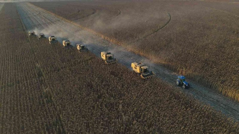 Dünyanın en büyük tarım işletmesinde ayçiçeği hasadı devam ediyor