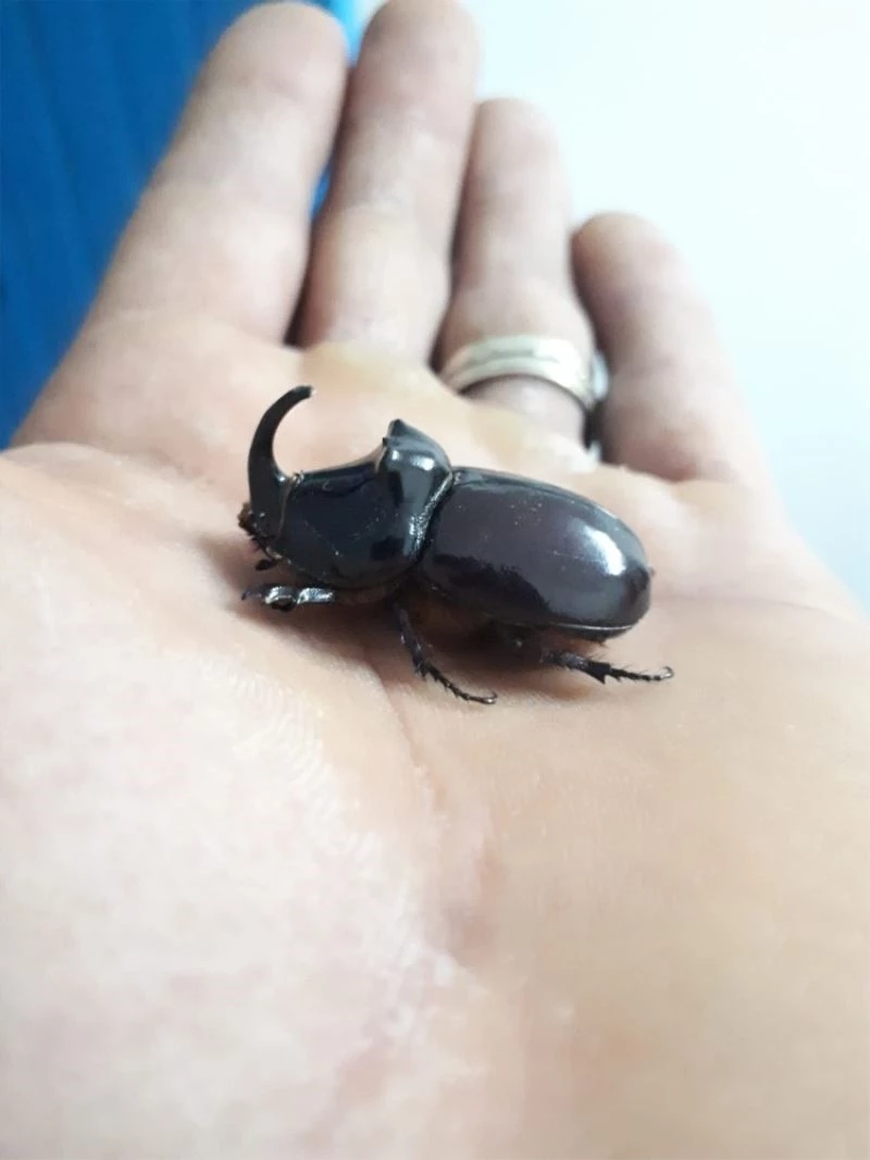 Güneş, “Evde otururken birden bu böceği fark ettim. İlk başta normal bir böcek gibi geldi ama incelediğimde gergedan böceği olduğunu anladım. Bu böceğin çok değerli olduğuna ilişkin haberler görmüştüm. İnternette yaptığım araştırmada kendi ağırlığının 850 kat fazlasını kaldırabildiğini öğrendim. Bizim evimizin davetsiz misafiri oldu. Daha sonra da doğal hayatına geri bıraktık” dedi.