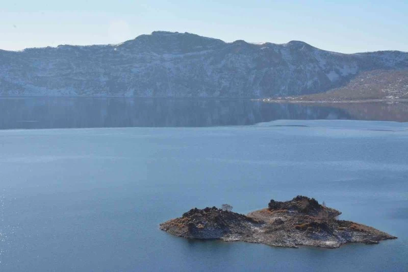 Bitlis’in Tatvan ilçesinde bulunan dünyanın ikinci büyük krater gölü olan Nemrut Krater Gölü beyaz gelinliğini giydi.