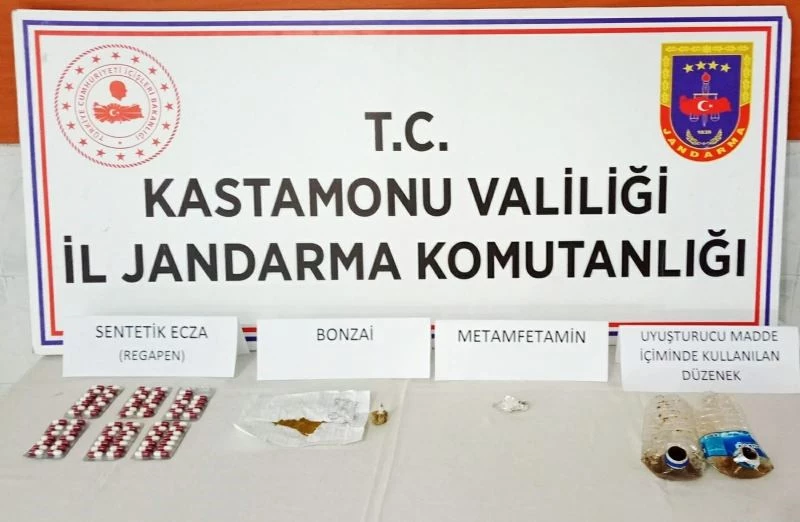 Kastamonu İl Jandarma Komutanlığı Kaçakçılık ve Organize Suçlarla Mücadele Şube Müdürlüğü (KOM) ile İnebolu İlçe Jandarma Komutanlığı ekipleri, bir istihbarı bilgiyi değerlendirerek İnebolu ilçesine bağlı Durupınar köy yolunda bir aracı durdurmak istedi. ‘Dur’ ihtarına uymayarak kontrol noktasından kaçan araç, kovalamaca sonunda yakalandı. Yakalanan araçta jandarma ekiplerince yapılan aramada, 12 gram ağırlığında Bonzai, 81 uyuşturucu hap, yaklaşık 2 gram ağırlığında metamfetamin ve uyuşturucu madde içiminde kullanılan aparatlar ele geçirildi.