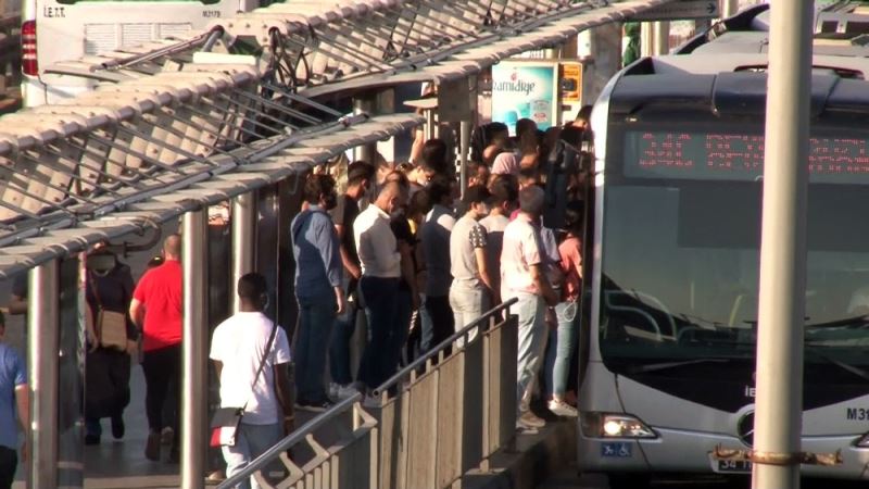 Korona virüsle mücadele kapsamında yetkililerin maske ve sosyal mesafe uyarılarına rağmen, metrobüs ve duraklardaki mesafesiz bir şekilde oluşan riskli yoğunluk dikkat çekti.