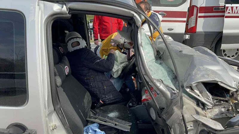 Kocaeli’nin Kartepe ilçesinde seyir halindeki hafif ticari araç, kırmızı ışıkta duran tıra arkadan çarptı. Çarpışmanın şiddetiyle araç içinde sıkışan hafif ticari aracın sürücüsü, itfaiye ve sağlık ekiplerinin uzun uğraşları neticesinde sıkıştığı yerden çıkarıldı. Sürücünün hayati tehlikesinin bulunduğu öğrenildi.
