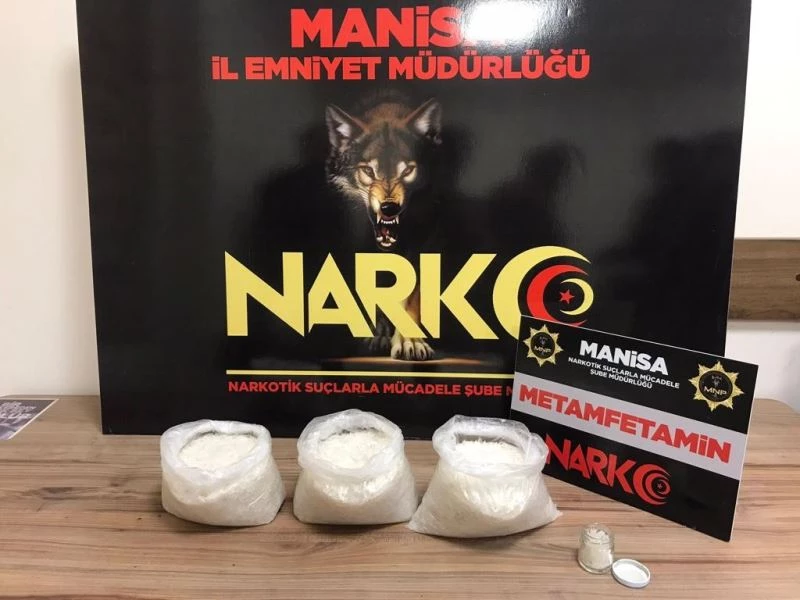 Manisa İl Emniyet Müdürlüğü Narkotik Suçlarla Mücadele Şube Müdürlüğü ve İstihbarat Şube Müdürlüğü görevlilerince uyuşturucu veya uyarıcı madde ticareti yapan, nakleden ve kullanan şahıslara yönelik yapılan çalışmalar çerçevesinde durdurulan bir araçta yapılan aramada, 4 parça halinde toplam 3 kilo 23 gram metamfetamin maddesi ile uyuşturucu madde ticaretinden elde edildiği değerlendirilen 34 bin TL ele geçirildi. Konuyla ilgili 2 şüpheli şahıs uyuşturucu veya uyarıcı madde imal ve ticareti yapmak suçundan gözaltına alınarak haklarında adli işlemlere başlanıldığı öğrenildi.