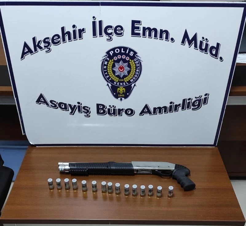 Konya’nın Akşehir ilçesinde polisin şüphe üzerine durdurduğu araçta ruhsatsız pompalı av tüfeği ile 15 dolu kartuş ele geçirildi.