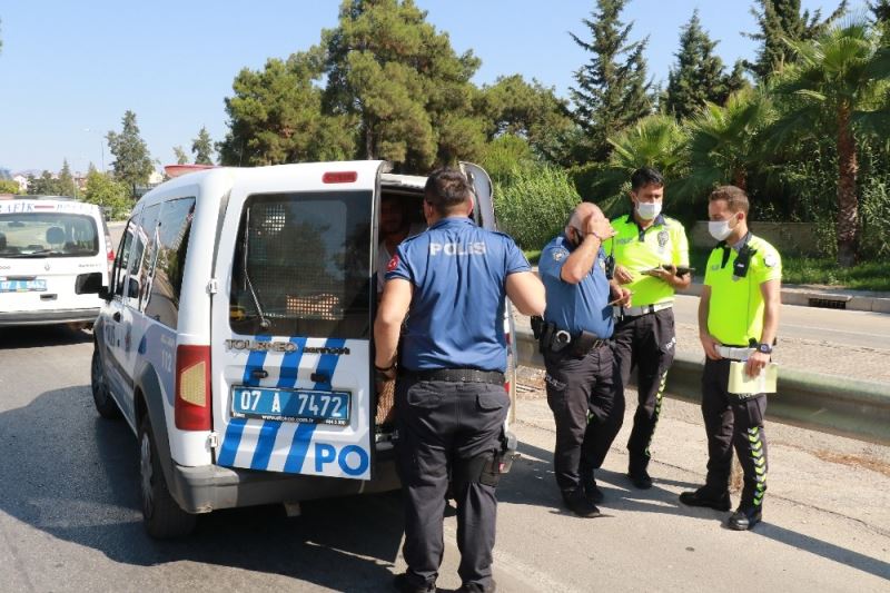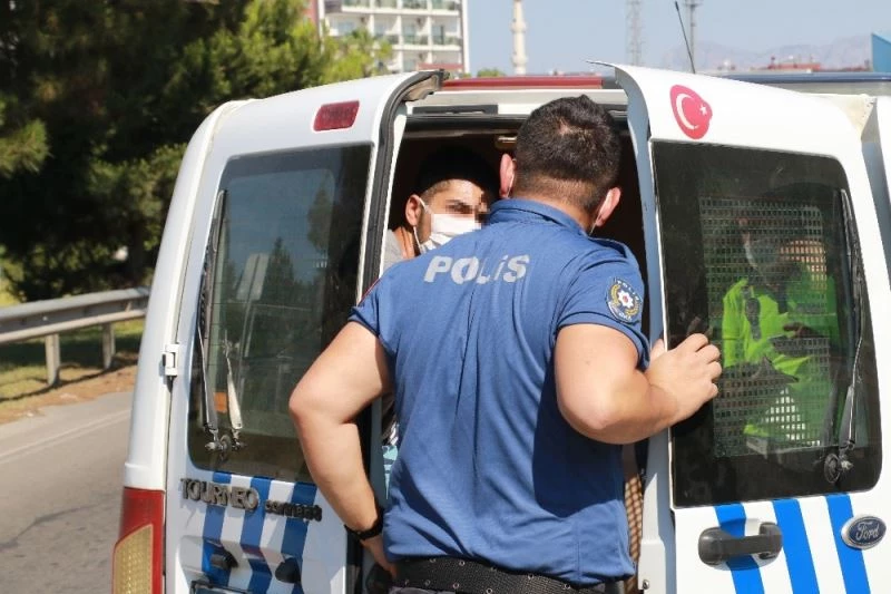 Antalya’da polisin ‘dur’ ihtarına uymayan ehliyetsiz otomobil sürücüsü, kısa sürede ekipler tarafından kıskıvrak yakalandı. Trafikten çekme belgeli olduğu belirlenen otomobilin plakalarının ise plastikle sahte yapılmış olduğu tespit edildi. Kendisini çeken gazetecilere, ‘Çekme. Esnafız biz kardeşim’ diyen sürücüye, ehliyetsiz araç kullanmak, dur ihtarına uymamak, trafikten çekili belgeli araçla trafiğe çıkmak, plakasız araç kullanmak suçlarından 6 bin 200 TL ceza kesildi, aracına da el konuldu.