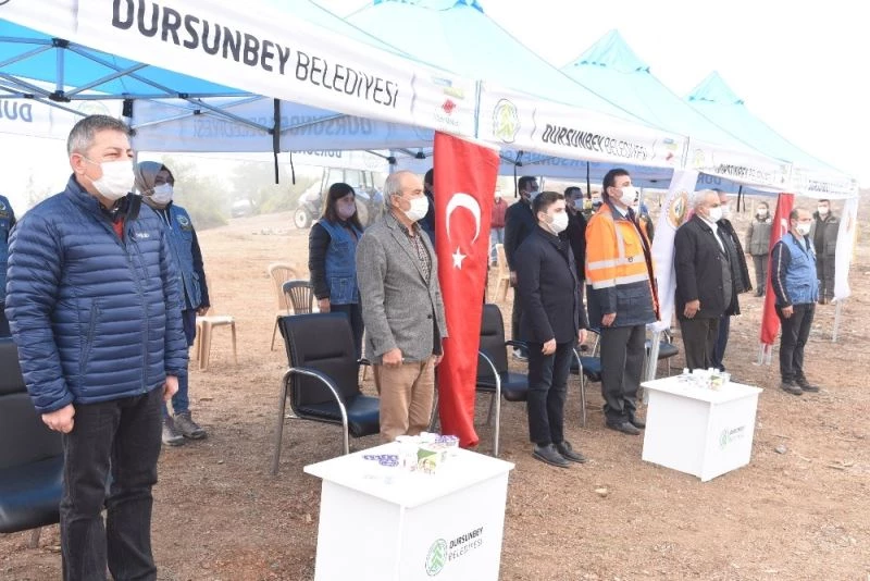 Türkiye’nin dört bir yanında bugün kutlanan Ağaç Bayramı etkinlikleri çerçevesinde Dursunbey Çınar mahallesi bölgesinde oluşturulan ağaçlandırma sahasında yüzlerce fidan ile toprakla buluştu.