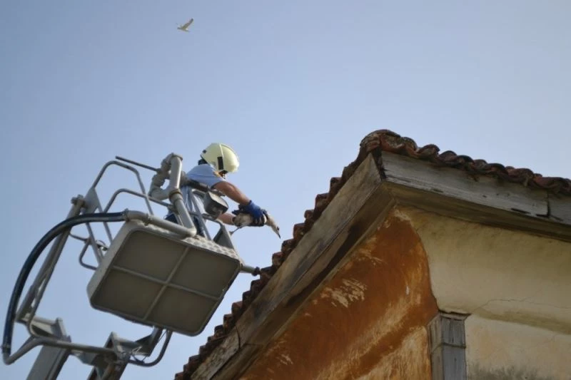 Mersin’in Bozyazı ilçesinde metruk bir binanın çatısındaki yuvalarından yere düşen yavru martılar, itfaiye ekiplerinin çalışması sonrası yeniden yuvalarına bırakıldı.