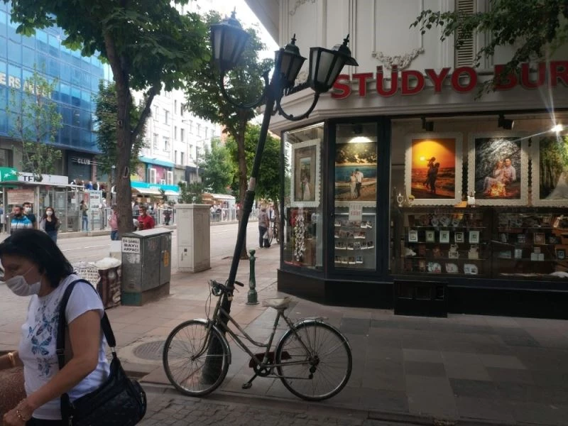 Bazı vatandaşların ise devrilmek üzere olan sokak lambasının altına bisikletini bağlaması dikkat çekti. Lambanın birkaç gündür eğik bir şekilde durduğunu ve tehlike arz ettiğini belirten vatandaşlar, yetkililerin konuya bir çözüm getirmesini talep ediyor.