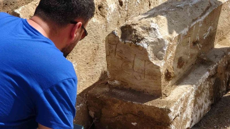 Tokat’ta istinat duvarı çalışması sırasında 2 lahit ile bir mezar taşı çıktı.