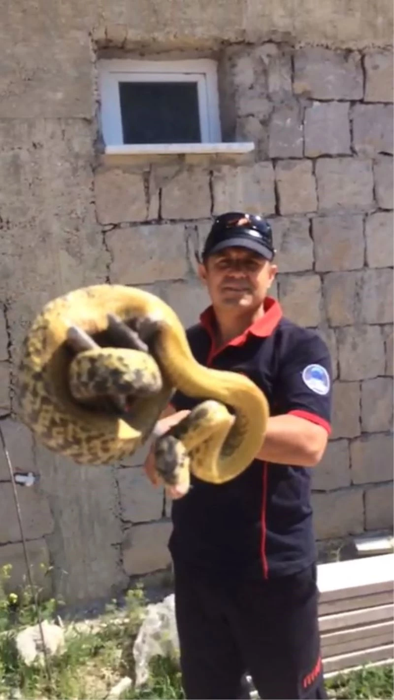 Kayseri Büyükşehir Belediyesi İtfaiye Daire Başkanlığı ekipleri duvardaki 3 metrelik dev yılanı yakaladı. Yılan yakalama timi, yılın ilk altı ayında 51 yılanı yakalayarak doğaya saldı.