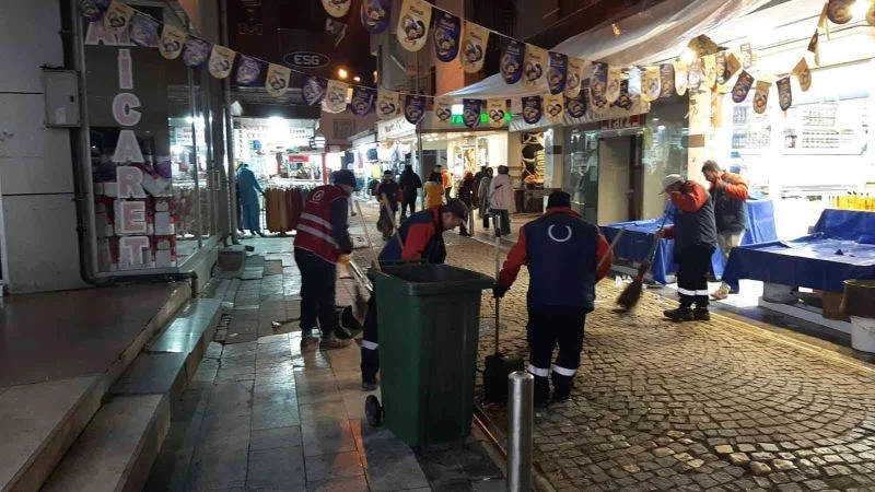 Düzce Belediyesi Temizlik İşleri Müdürlüğü ekipleri bayram arefesi ve Düzcespor’un şampiyonluk kutlamaları sebebi ile binlerce kişinin bulunduğu kent merkezinde sabaha kadar temizlik çalışması yaparak, şehrin bayrama tertemiz girmesini sağladı.