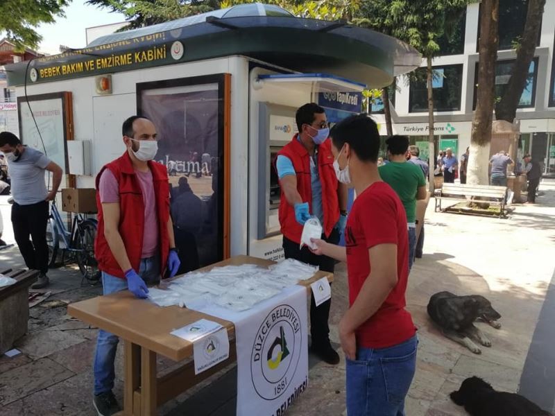 DÜZCE (İHA) – Düzce Belediyesi, maske üretim tesislerinde ürettiği maskeleri vatandaşlara kurduğu stantlarla ulaştırmaya devam ediyor.