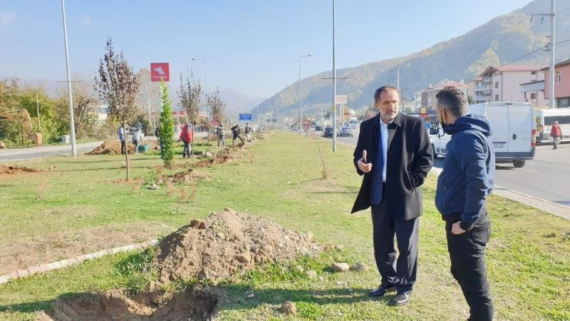 Türkiye’nin en önemli geçiş güzergahlarından birisi olan Bolu Dağı’na komşu olan Kaynaşlı’da ilçeyi ortadan ikiye ayıran D-100 karayolunda ilçe belediyesi tarafından peyzaj düzenleme çalışmaları devam ediyor. Daha önce kavşak üzerinde yapılan çalışmalar büyük beğeni toplamasının ardından diğer bölgelerde de çalışmaların yapılmasına başlanmıştı. Yeşillendirme çalışmaları kapsamında refüjlerde ağaç dikimlerine başladı. Kaynaşlı Belediye Başkanı Birol Şahin konu ile ilgili işçileri ziyaret ederek çalışmalar hakkında bilgi alırken, personele de kolaylıklar diledi.