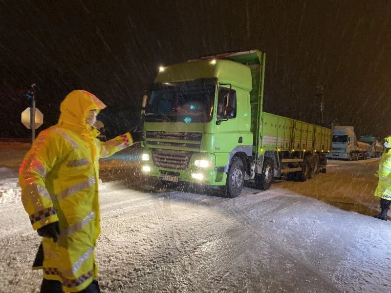 Zonguldak D-655 karayolu yoğun kar yağışı nedeniyle ağır tonajlı araçların geçişine kapatıldı.