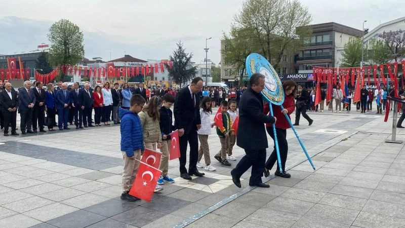 Düzce’deki kutlamalar Atatürk Anıtına çelenk konulmasıyla başladı. Milli Eğitim Müdürü Tamer kırbaç çocuklarla birlikte Atatürk Anıtına çelenk bıraktı. Ardından saygı duruşunda bulunuldu, İstiklal Marşı okundu.