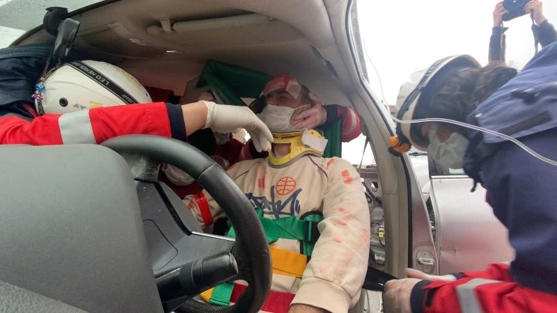 DÜZCE (İHA) – Düzce’de sağlık kahramanları Ulusal Medikal Kurtarma Ekipleri’nin (UMKE) trafik kazası tatbikatı gerçekleştirdi. Gerçeği aratmayan tatbikatta yaralılar dakikalar içinde bulundukları yerlerden çıkartıldı.