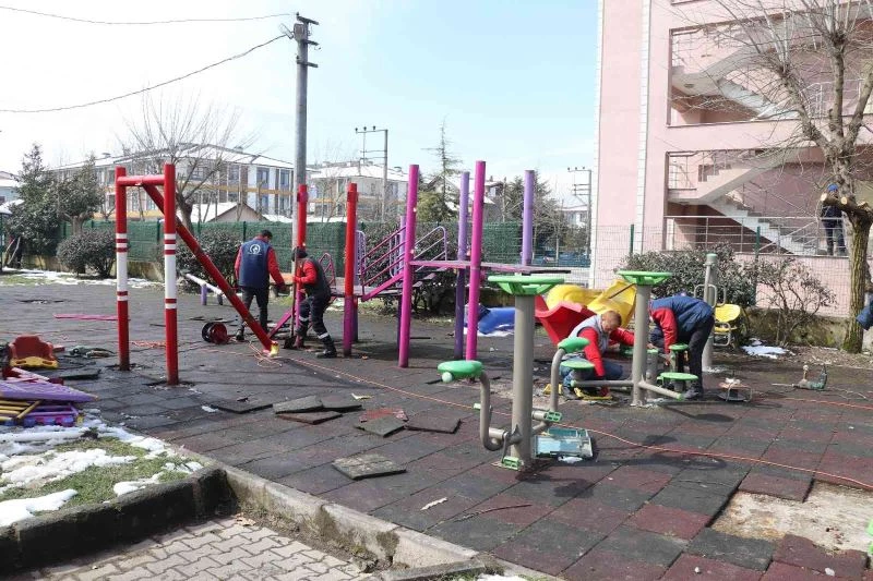 Düzce Belediyesi, park ve bahçelerdeki çalışmalarına ara vermeden devam ediyor. Hava şartlarının uygun olması ve rutin kontrollerin ardından plan ve programa göre hareket eden Park ve Bahçeler Müdürlüğü ekipleri, çocuk oyun parklarında hem bakım onarım hem de yenileme çalışması yapıyor. Bin 684 metrekare alana sahip olan Hamidiye Mahallesi Nezih Tütüncü parkında eskimiş ve tahrip olan çocuk oyun grubu, çöp kutuları ve donatılar park içerisinden kaldırıldı.