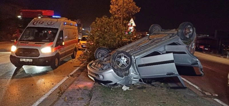 Düzce(İHA) – Düzce’de sürücüsünün direksiyon hakimiyetini kaybettiği otomobil takla attı. Refüjde bulunan ağaçları yıkarak durabilen otomobilde bulunan 3 kişi yaralandı.