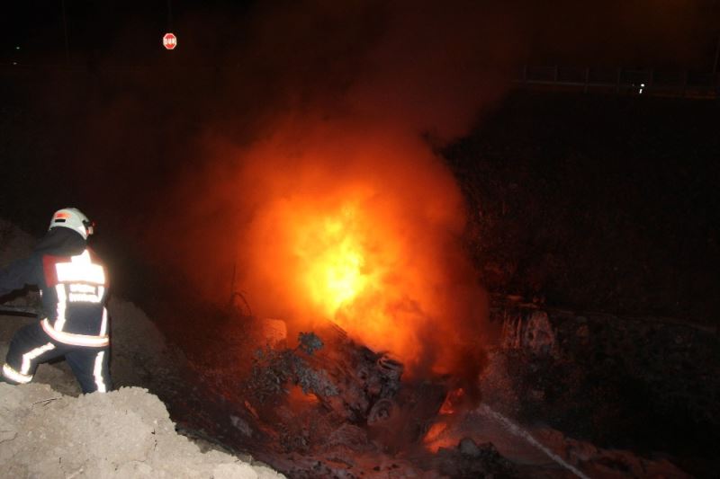 Düzce’de şarampole yuvarlanan ambulans alev alev yandı