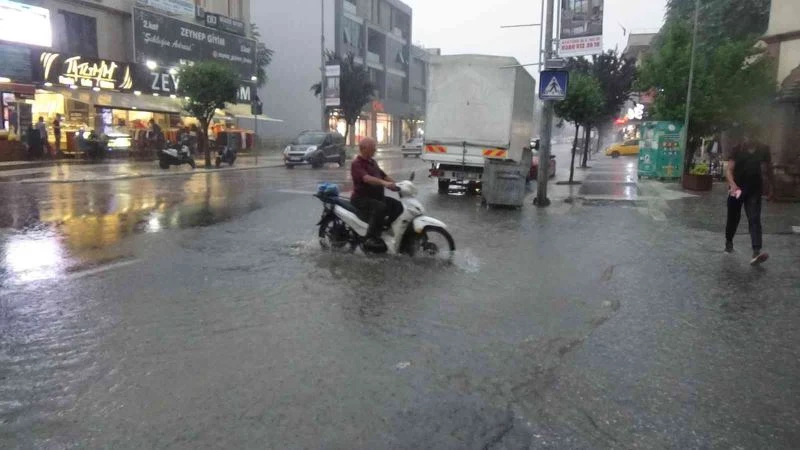Düzce’de akşam saatlerinde aniden bastıran sağanak sokakları adeta göle çevirdi. Araçlar ve yayalar sokaklarda ilerlemekte güçlük çekti.