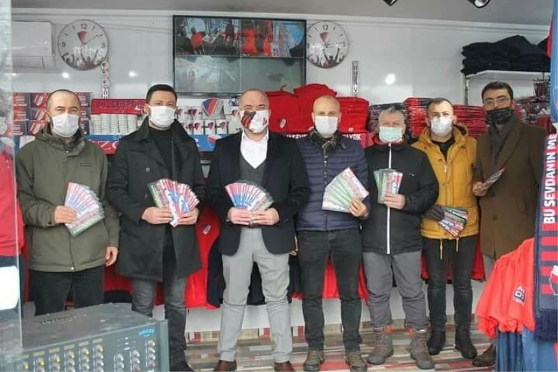 Misli.com 3.Lig 4.Grupta şampiyonluk mücadelesi veren Düzcespor, Lig’in ikinci yarısında şampiyonluk yolunda emin adımlarla ilerlemek amacıyla “Hatıra Bilet” kampanyası başlattı. Pandemi süreci nedeniyle maçların seyircisiz oynanması Düzcespor’da maddi kayıplara neden oldu. Bu sıkıntıların üstesinden Düzcespor’a gönül veren taraftarları ile gelmek isteyen Yönetim Kurulu Hatıra Bilet kampanyasını hayata geçirdi. Kampanya Düzce kamuoyundan büyük destek gördü. MÜSİAD Düzce Şube Başkanı Vefa Pehlivan, yönetim kurulu ve üyeleri ile Düzcespor Storeyi ziyaret ederek 70 bilet satın aldılar.
