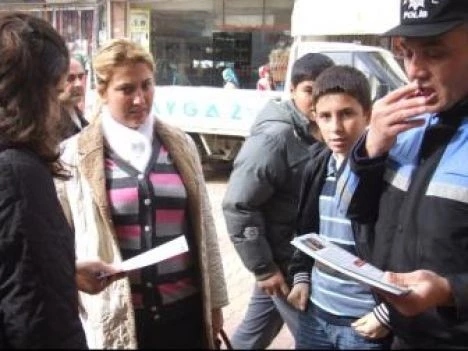 DÜZİÇİ - Düziçi Emniyet Müdürlüğü Toplum Destekli Polislik Büro Amirliği tarafından kömür zehirlenmelerine karşı halkı bilinçlendirmek amacıyla broşür dağıttı. Toplam 22 maddeden oluşan Kömür zehirlenmelerine karşı neler yapılabileceğinin anlatıldığı broşürde dikkat edilmesi gereken hususlara değiniliyor. Ülkemizde her yıl yüzlerce kişinin soba zehirlenmesi sebebiyle hayatını kaybettiğine dikkat çeken Düziçi Emniyet Müdürlüğü Toplum Destekli Polislik Büro Amirliği yetkilileri, ?İçinde bulunduğumuz kış mevsimi sebebiyle havalar soğudu ve kömür kullanımı ile birlikte katalitik sobalar, doğalgaz ve LPG?li şofbenler, kombiler, mangal ve eksoz dumanına bağlı olarak karbonmonoksit zehirlenmeleri yaşanmaktadır. Karbonmonoksit Zehirlenme belirtileri kapsamında alınacak tedbirler ile Karbonmoksit zehirlenmelerinden korunmak için alınacak tedbirler detaylı olarak anlatılmıştır. Broşürümüzde Doğru yakılan soba ısıtır, Yanlış yakılan soba öldürür ve Lodosta ocağını değil sobanı söndür sloganı kullandık. Sobaların nasıl yakılacağını resimlerle, bacaların nasıl olması ve temizliğinin nasıl yapılması gerektiğini çizimlerle anlattık. Broşürlerimizi özellikle ev hanımlarına vermek istedik bunun nedeni de sobaları sürekli ve daha çok ev hanımlarının yaktığını bildiğimiz için ev hanımlarını ulaşılması ve anlatılması gereken hedef kitle olarak seçtik? dedi.Haber: Süleyman Güzel - Düziçi