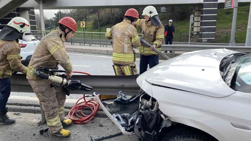 E-5 Karayolu’nda otomobil bariyerlere ok gibi saplandı