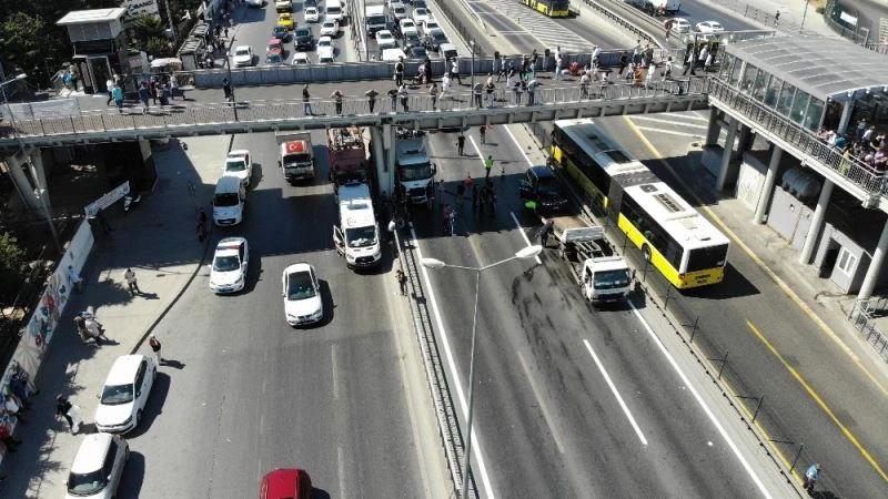 Kaza sonrası E-5 Küçükçekmece istikametinde trafik durma noktasına gelirken, oluşan yoğun trafik drone ile havadan da görüntülendi.