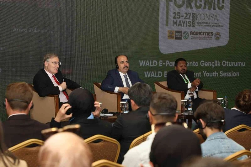Konya Büyükşehir Belediyesi’nin ev sahipliği yaptığı Birleşmiş Kentler ve Yerel Yönetimler Orta Doğu ve Batı Asya Bölge Teşkilatı (UCLG-MEWA) Genel Kurulu, Uluslararası Tarım Şehirleri Birliği (AGRICITIES) Genel Kurulu ve Küresel Tarım Forumu çerçevesinde e-Parlemento Gençlik Oturumu gerçekleştirildi. Moderatörlüğünü WALD Yönetim Kurulu Başkanı Mehmet Duman’ın yaptığı oturumda salona gelen gençlerin yanında; çevrimiçi bağlantıyla Romanya, Belçika, İsveç, Almanya, Filistin, Lübnan, Brundi ve Yemen’den de gençler katılım sağladı.