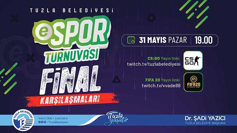 Tuzla Belediyesi sosyal medya hesapları ve Tuzla Belediyesi resmi web sayfası üzerinden yapılan başvuru sonrasında E-spor tutkunları final karşılaşması için bir araya geldiler. 31 Mayıs Pazar günü finali yapılan E-spor turnuvası Tuzla Belediyesi’nin yaptığı yayınla da heyecanlı görüntülere sahne oldu. Düzenlenen yarışmada dereceye giren gençler, ödüllerin sahibi oldular.