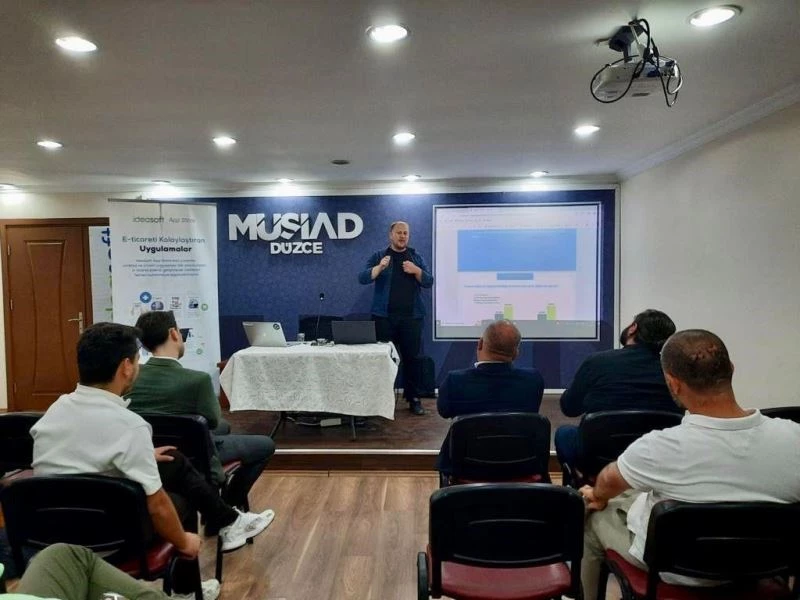 MÜSİAD Düzce Şubesi Konferans Salonu’nda gerçekleştirilen e-ticaret etkinliğinde, Serbay Interactive Ajans Başkanı Görkem Özdemir ve konuşmacılar, girişimcilerin e-ticaret ve e-ihracatta adım atma süreçlerinde karşılaşabilecekleri zorlukları, gidilecek yol haritasını ve plan ve bütçe yönetimi gibi konuları ele alarak katılımcıların sorularını yanıtladı.