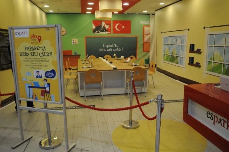 Eğitim Bilişim Ağı (EBA) aracılığıyla gerçekleştirilen uzaktan eğitime destek veren Espark Alışveriş Merkezi, bünyesinde kurduğu Uzaktan Eğitime Erişim Noktası ile derslere erişimde çocuklara kolaylık sağlıyor.