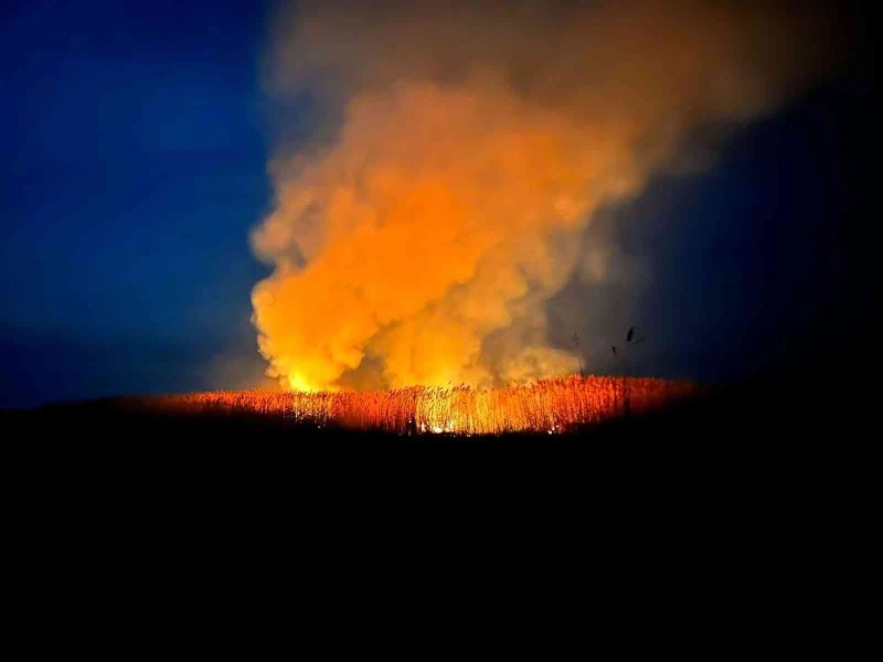 Afyonkarahisar’daki Eber Gölü’nde bir ayda 7. kez yangın çıkarken, alevlerin büyüklüğü Çay, Bolvadin ve Sultandağı ilçelerinden görüldü.
