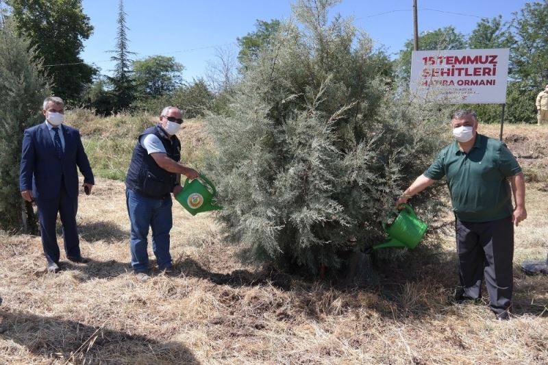 Edirne’de 15 Temmuz Şehitleri Hatıra Ormanı’na dikilen fidanların bakımı yapıldı
