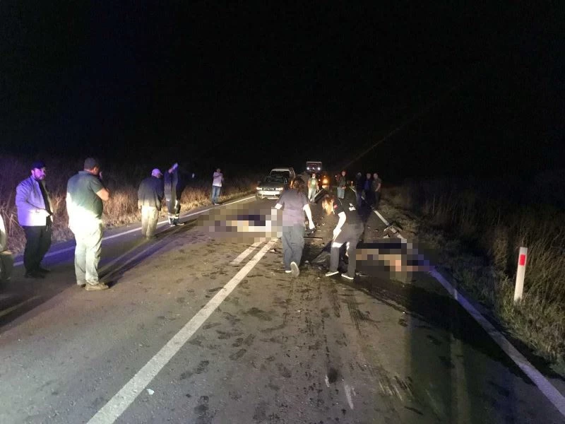 Edirne’de 2 kişinin öldüğü kazada otomobil önce yayalara sonra traktöre çarpmış