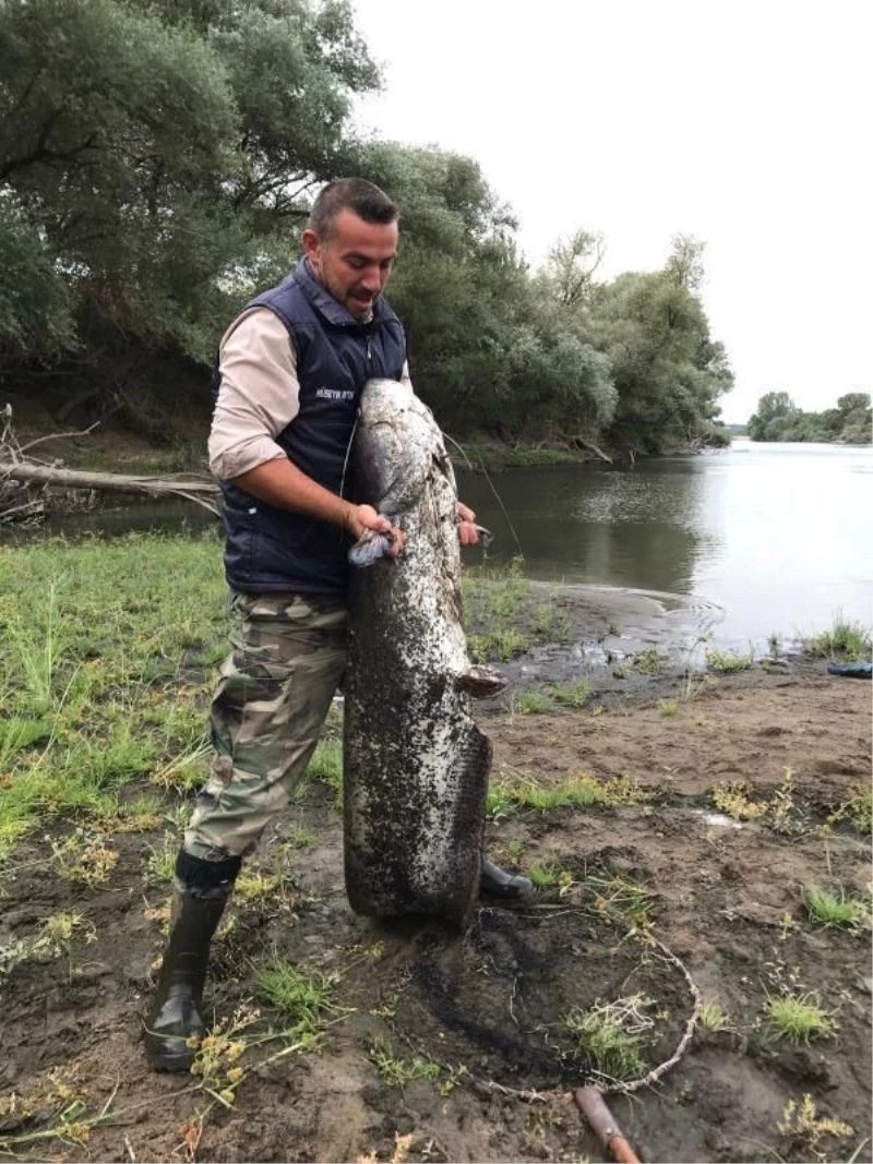 Edirne’de amatör balıkçı, Meriç nehrinde 44 kilo ağırlığında yayın balığı tuttu.