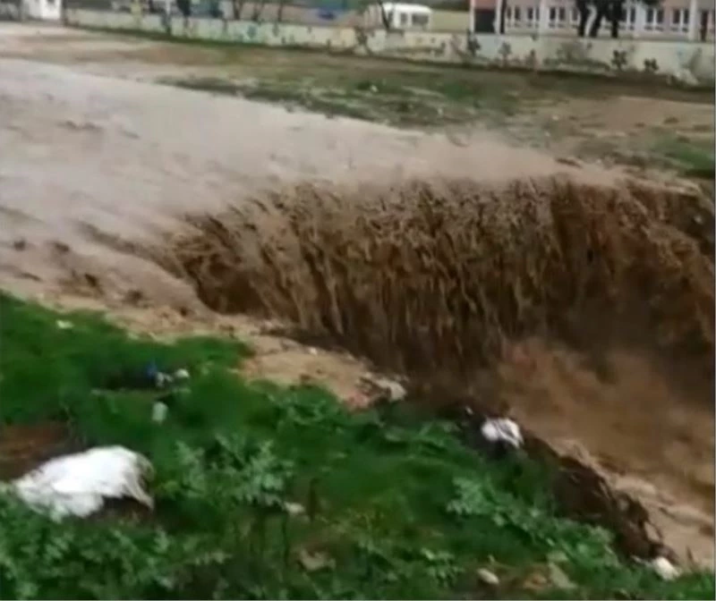 Edirne’nin Süloğlu ilçesinde şiddetli sağanak nedeniyle dere taştı.