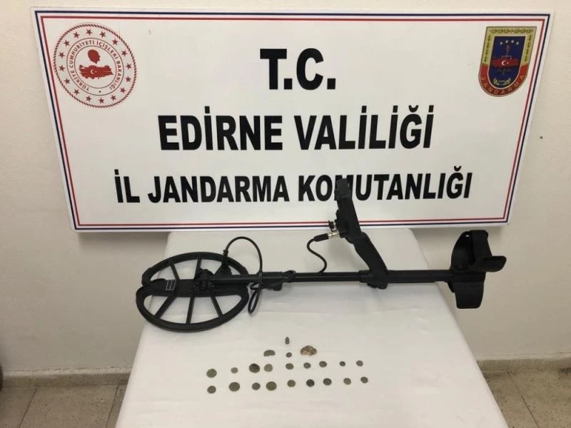 Edirne’de, İl Jandarma Komutanlığı ekiplerince yapılan çalışmalarda, bir arazide şüpheli bir şahsın olduğu ve dedektör ile arama yaptığı tespit edildi. Şahsın üzerinde ve aracında yapılan aramalarda tarihi eser olduğu değerlendirilen sikke ele geçirildiği bildirildi.