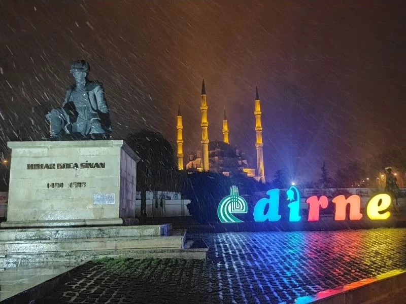 Meteoroloji Genel Müdürlüğü’nün yoğun kar uyarılarının ardından Edirne’de beklenen yağış başladı. Hava sıcaklığının 8 derece ölçüldüğü kentte meteoroloji yetkilileri, kar yağışının yarın öğle saatlerine kadar yoğun şekilde devam edeceğini aktardı.