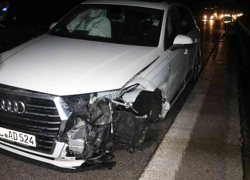 Edirne’de kar yağışı nedeniyle kayganlaşan yolda fren yapan Alman plakalı gurbetçi otomobili, başka bir araca arkadan çarptı.