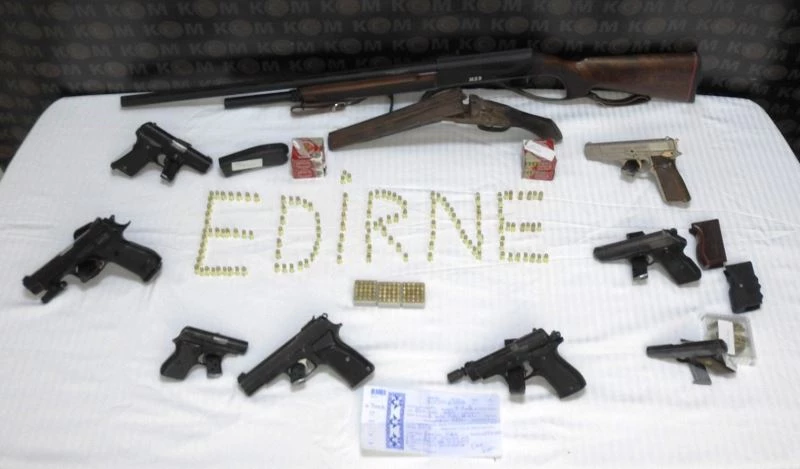 Edirne İl Emniyet Müdürlüğü Kaçakçılık ve Organize Suçlarla Mücadele Şube Müdürlüğü ekipleri, organize suç örgütüne yönelik kentteki 13 adrese operasyon gerçekleştirdi. Farklı adreslerde eş zamanlı olarak yapılan aramada, Ö.Ç.Y., E.S., B.E., E.A., A.A., S.A. ve Ö.M. O.K., K.K., U.K. gözaltına alındı. Şüphelilerin bulunduğu evlerdeki aramalarda 2 ruhsatsız av tüfeği, 330 fişek, 1 elektroşok cihazı, 1 senet, 6 ruhsatsız tabanca, 2 kuru sıkı tabanca, 2 gram esrar ve 3 şarjör ele geçirildi. Soruşturma sürüyor.