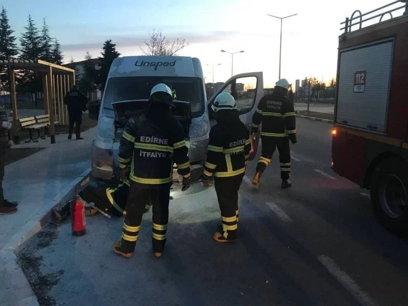 Edirne’de park halindeki kargo aracı motorunda çıkan yangında kullanılamaz hale gelirken, sürücü hafif şekilde yaralandı.